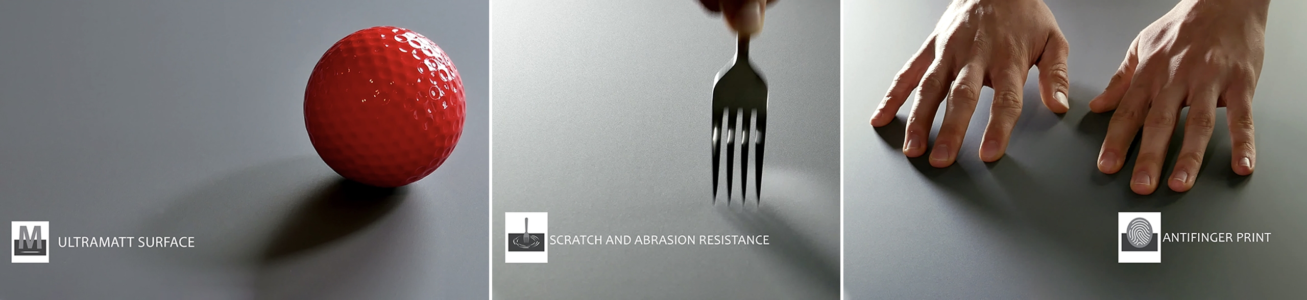 חומר הננו בתעשיית המטבחים והרהיטים מאופיין בגימור אולטרה מט, אחיד ואטום.