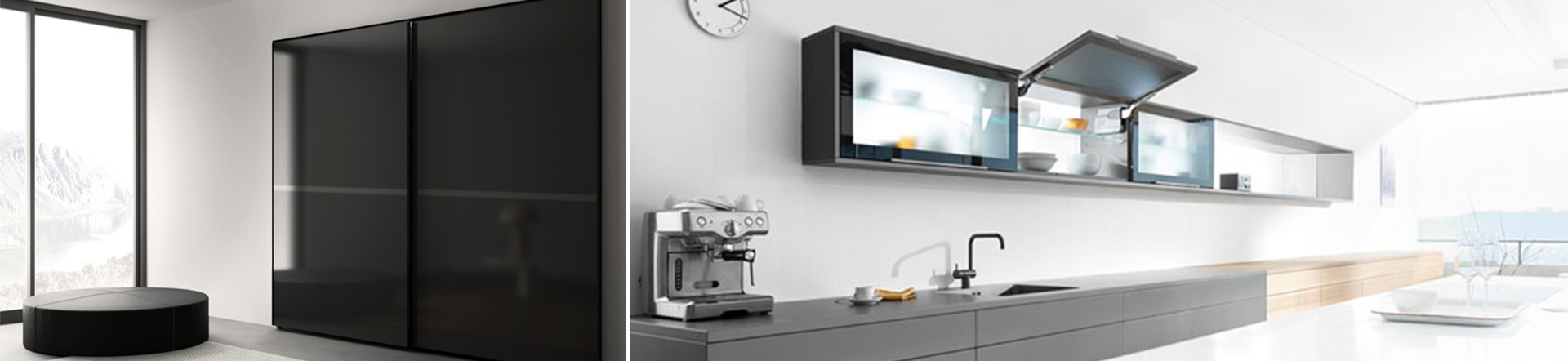 השקיפות מאפשרת לשלב את הזכוכית במגוון יישומים. היא חומר אידיאלי לשילוב במטבחים ורהיטים, מאחר והיא נשמרת כחדשה לאורך זמן. היא מושלמת ליישום בדלתות גדולות ולכן מתאימה לארונות וחדרי ארונות ולארונות קלאפה במטבח. את הזכוכית ניתן לצבוע בכל גוון, להדפיס טקסטורה לקבלת מראה תלת ממדי ועוד.
