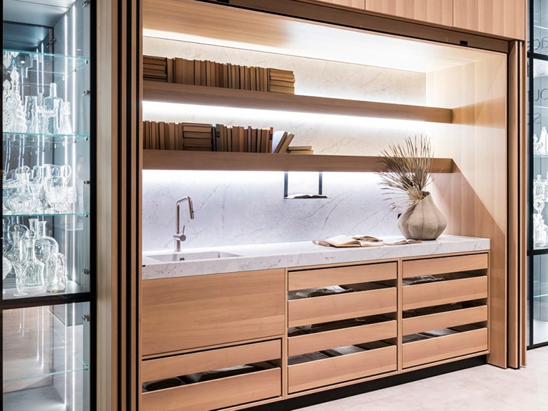 אחד האלמנטים הבולטים בתערוכה היה אלמנט ההסתרה, שנכח גם בשילוב ידיות וצירים נסתרים, אך בעיקר ביישום מערכות כיס שהוצגו כמעט בכל אזור בבית לרבות המטבח, לטובת הסתרתו או לסגירת פינה. מערכות הכיס שהוצגו יושמו עם חזיתות גבוהות במיוחד במגוון חומרים, בדגש על אבן וזכוכית תוך שהן חושפות ומסתירות אזורים שימושיים ופעילים ברחבי הבית, בהתאם לצרכים המשתנים, כגון משרדים ביתיים, אזורי שירות, שימוש כפול בחלל האירוח ובמטבחים.