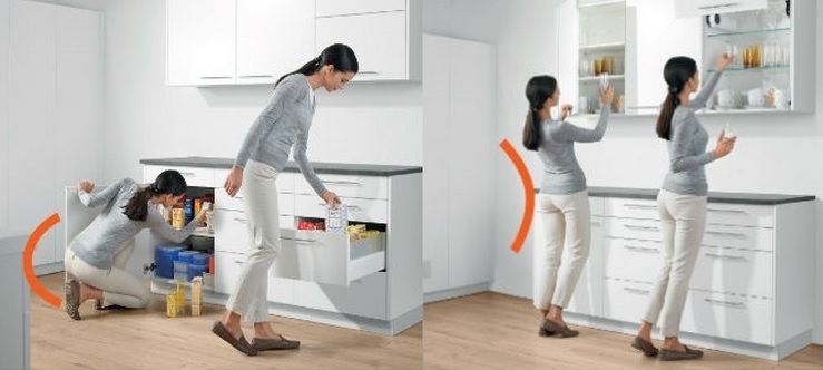 כדי לעבוד במטבח בצורה נוחה ונכונה, יש להימנע מפתרונות אחסון שיגרמו לכם להתכופף, לכרוע או לטפס. לדוגמה: העדיפו יחידת מגירות על פני מדפים בארונות התחתונים במטבח, או רכזו את תכולת המטבח אשר אתם משתמשים בה באופן שוטף באזור הנגיש ביותר – מתחת לשיש.