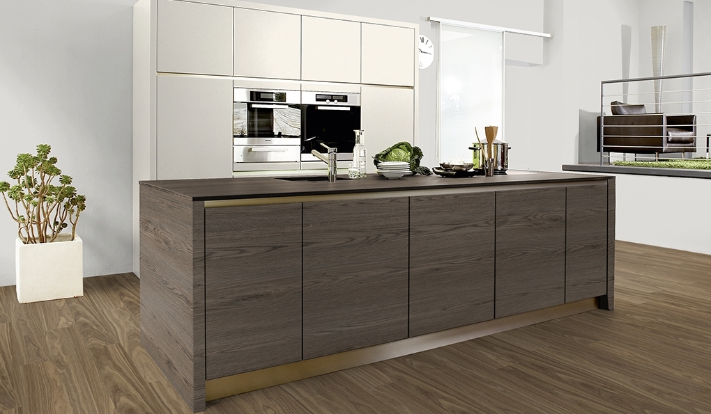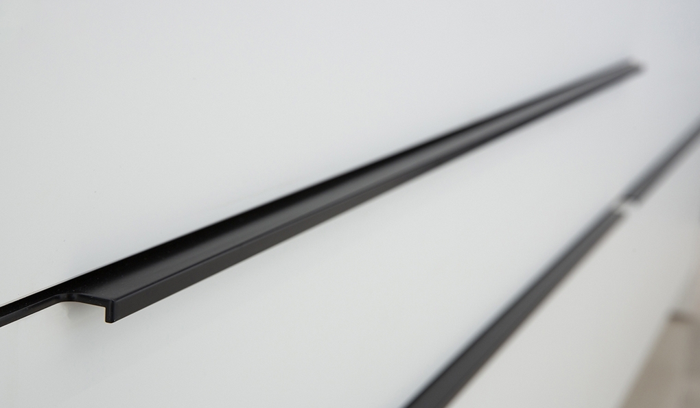ידית זו מכוסה בחומר ממנה עשויה החזית ונטמעת בתוכה, כך שמתקבלת התחושה שמדובר ביחידה אחת. ידית זו מייצרת אינסוף אפשרויות עיצוביות – אם למשל בחרתם במטבח עם חזיתות פורניר, ניתן לשלב בגב הידית פס פורניר ובכך להטמיע את הידית בחזית. רק אם תבחנו מקרוב, תראו פס דקיק של אלומיניום בחזית. בחרתם במטבח לבן, תוכלו לשלב ברקע הידית חומר שונה או צבע שונה ובכך לקבל קונטרסט עיצובי. אלה הן רק שתי דוגמאות מתוך איסוף אפשרויות עיצוביות.