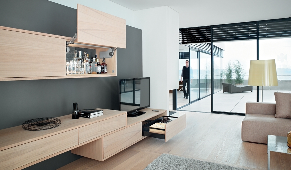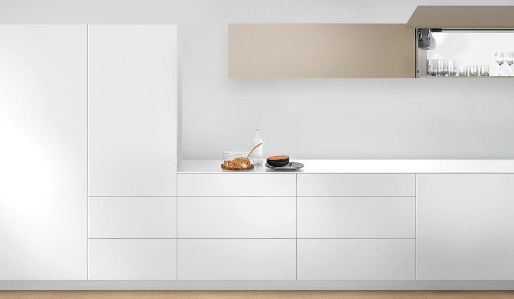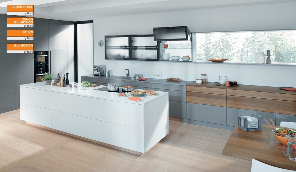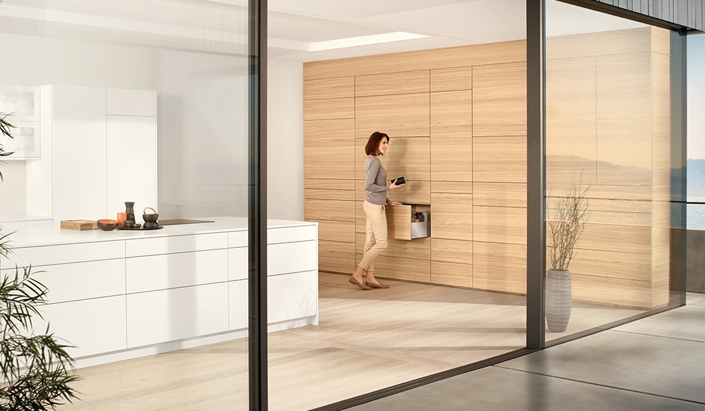 BLUM צפתה את הפופולריות ההולכת וגוברת של מטבחים ללא ידיות ופיתחה פתרונות טכנולוגיים שתומכים במגמה זו ומאפשרים למגירות, קלפות ודלתות צירים ללא ידיות להיפתח בנגיעה.