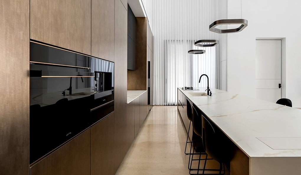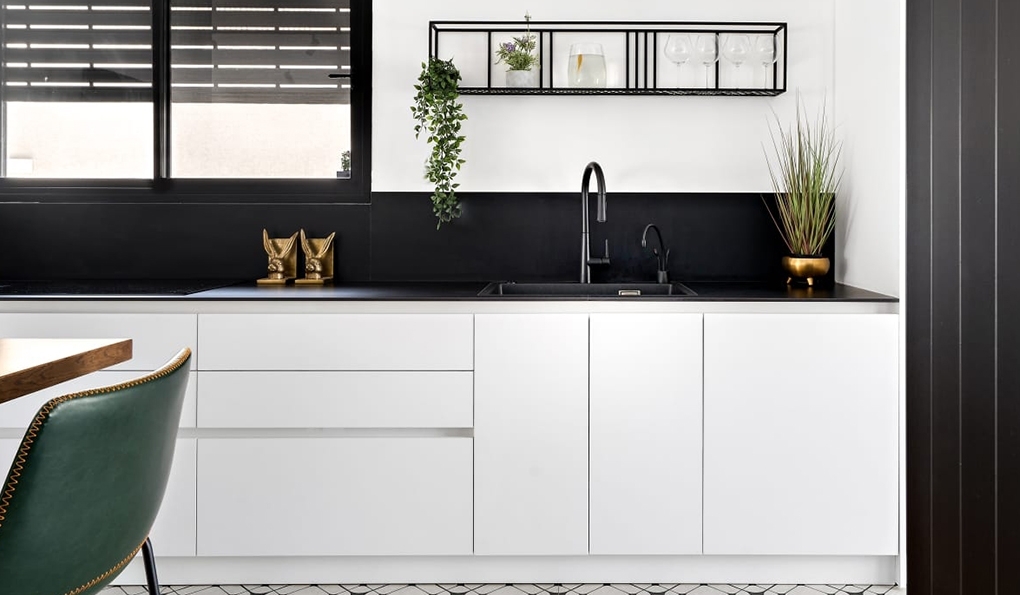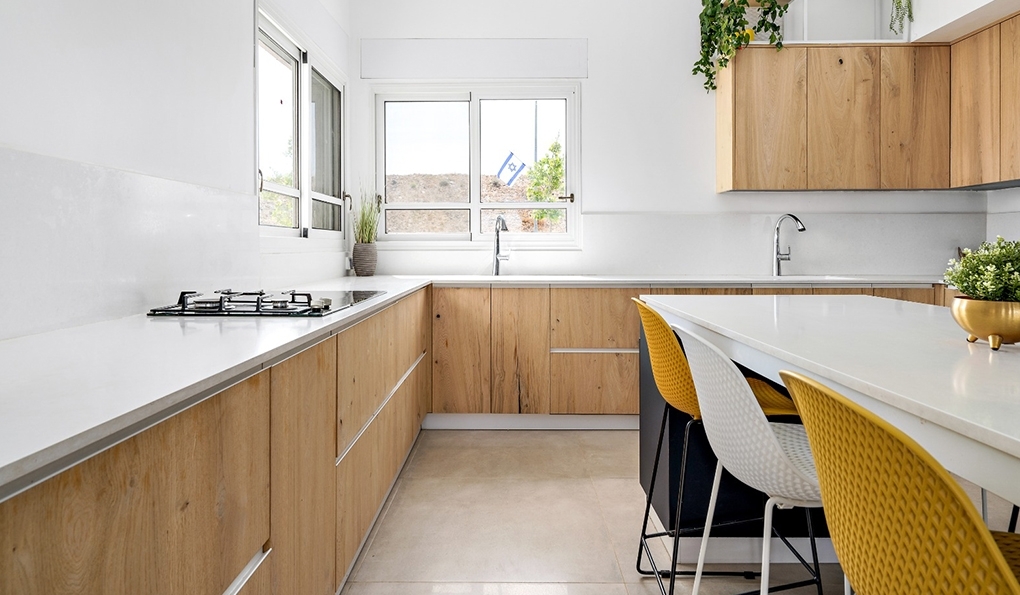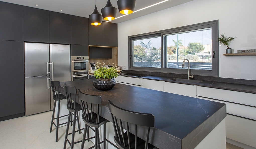 שימוש בידית זו יוצר מעין "פס עיצובי" לכל רוחבו של המטבח ומקנה לו מראה מודרני, נקי ומינימליסטי.